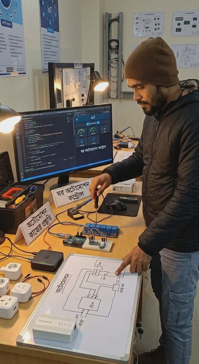Now smart flats and offices are being rapidly built. The demand to control everything—lights, fans, AC, CCTV—via mobile is increasing. If you know IoT, you can earn by providing these installations and services.
